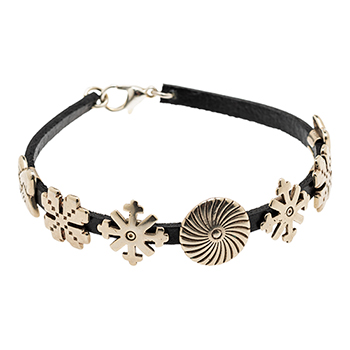 • Leather band 0.1”W, bronze charms 0.7”D, size 6.5”