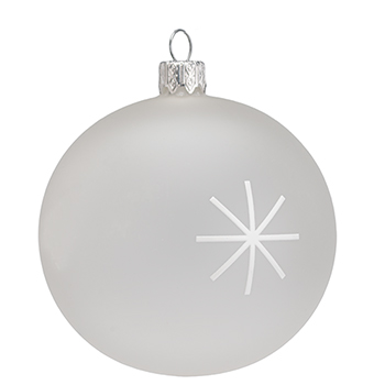Opaque White Christmas Tree Ball with Sun Symbols (SKU #21496)