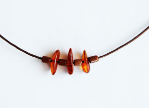 Handmade amber and wood necklace.