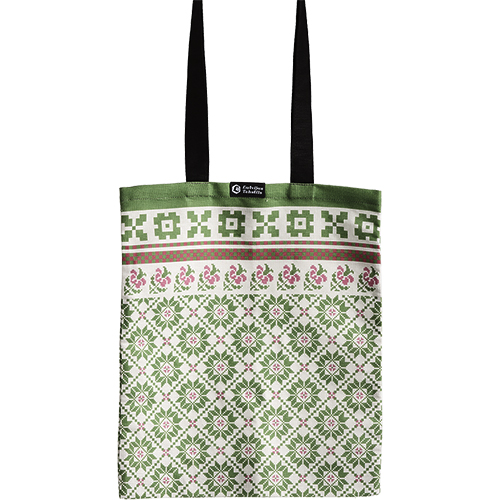 55% linen/45% cotton, 16”H x 14”W x 4”D, handles 14” (40 x 35 x 10 cm)