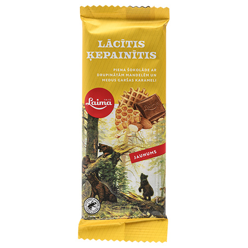 • Lācītis Ķepainītis Chocolate with Honey Caramel (ar drupinatam mandelem, vafelu gab. un medus garsas karameli)