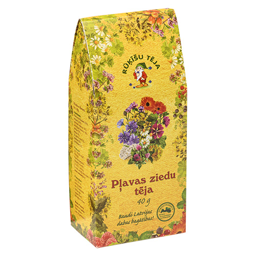 Chamomile, oregano, hibiscus (meža malva), marigold (kliņģerīte), yarrow (pelašķi), clover, St. John’s wort (asinszāle), kaķpēdiņa, cornflower (rudzupuķe).