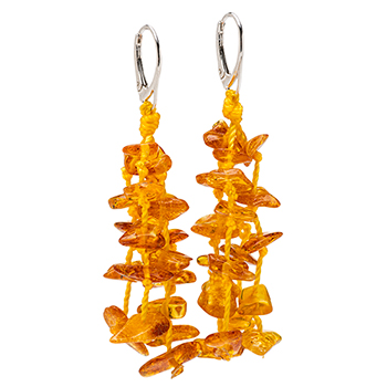 Amber, silver hook, 2.7”L, 0.76”W (1.8 x 7 cm)