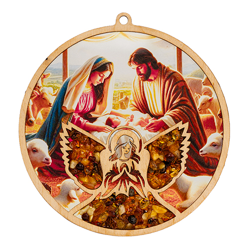 Nativity Scene and Amber Angel Ornament (SKU #15676)