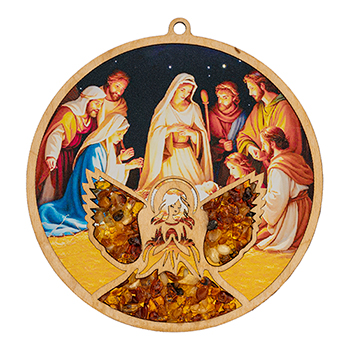 Nativity Scene with Three Wise Men and Amber Angel Ornament