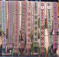 Hand made Lithuanian sashes. Click on "Click here for large image" to see sash choices in more detail. Choose from many different designs and color schemes.