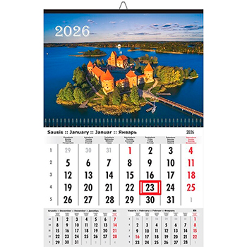 - In Lithuanian and English, picture does not change, tear off 3-month page, 12.5” x 10” (32 x 25 cm)