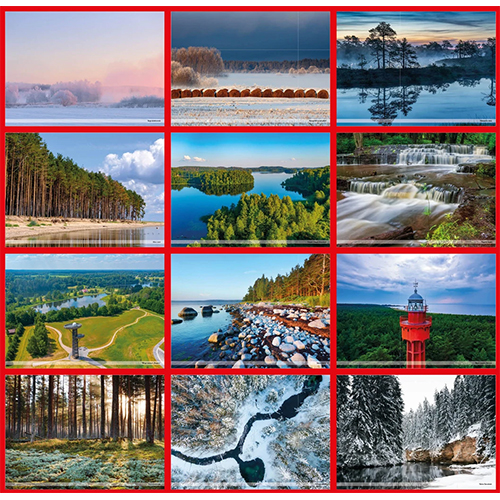 - A beautiful calendar that brings a new image of Estonian nature to each month – beaches, forests, and peaceful landscapes. Perfect for those who wish to feel the beauty of their homeland every day. The calendar also includes name days, holidays, folk calendar observances, moon phases, and sunrise times.