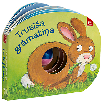 Trusīša grāmatiņa. Built-in spinning ball rattle for developing eye-hand coordination and hearing.