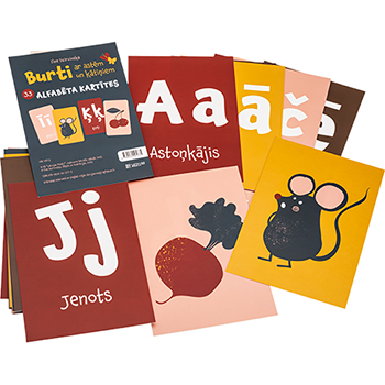 In Latvian, 33 Latvian alphabet cards, 8” x 5.7”